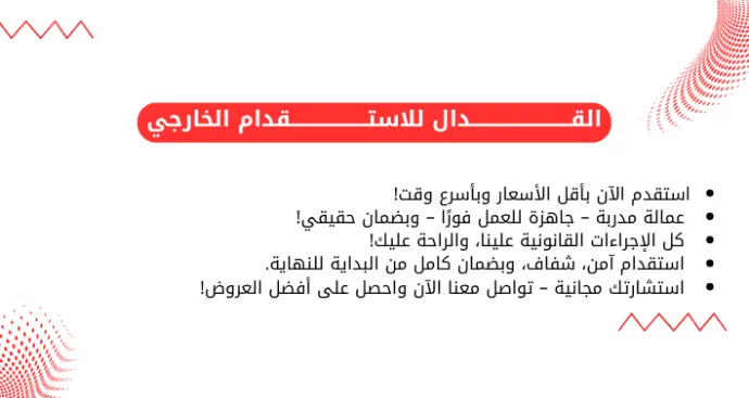 يقدم مكتب القدال خدمات توظيف متكاملة تتميز بالاحترافية والسرعة، حيث نعمل على توصيل الكفاءات المتميزة بالشركات التي تسعى لتوظيف موظفين ذوي مؤهلات عالية. نسعى جاهدين لتوفير أفضل الفرص الوظيفية في أقصر وقت ممكن، سواء كنت صاحب عمل أو باحث عن فرصة عمل.